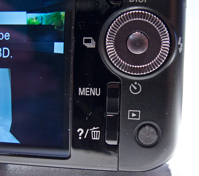 For those unfamilar with Sony’s NEX cameras, the wheel serves as a sort of faux mode dial. Rotate the wheel and it brings what looks like a traditional mode dial graphic on the camera’s LCD. As you rotate it further, so does the on-screen dial. While it keeps the camera’s case rather clean, I have a feeling that I need to go “in the map” when I use it. Somehow, using this control wheel is both convenient and inconvenient at the same time.