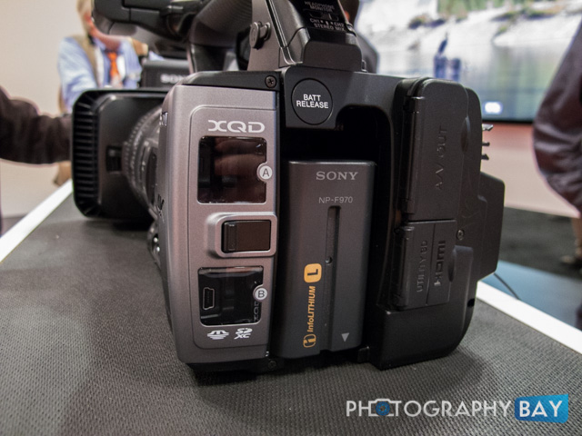 The camera has dual XQD card slots on the back, as well as card slots for Memory Stick and SD card formats.
